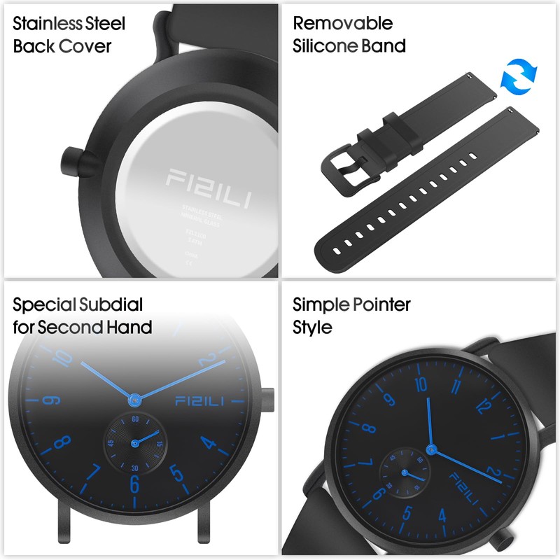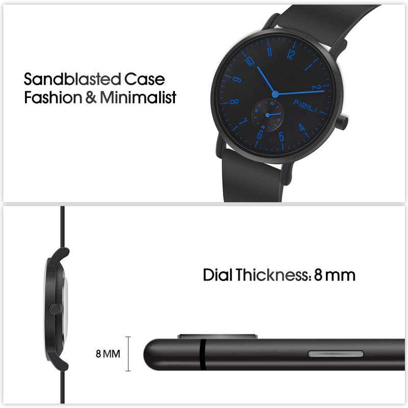 FIZILI Men's Watch Ultra-Thin Minimalist Waterproof Fashion Watch for Men or Women with Silicone Band Wrist Watches 1100 Black Blue