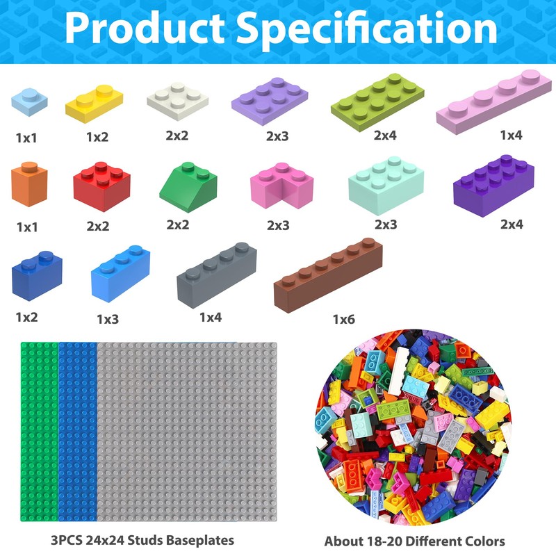 Fizzvolta 1500PCS Building Bricks Set, Classic Small Building Blocks, Compatible with All Major Brands