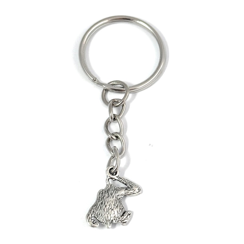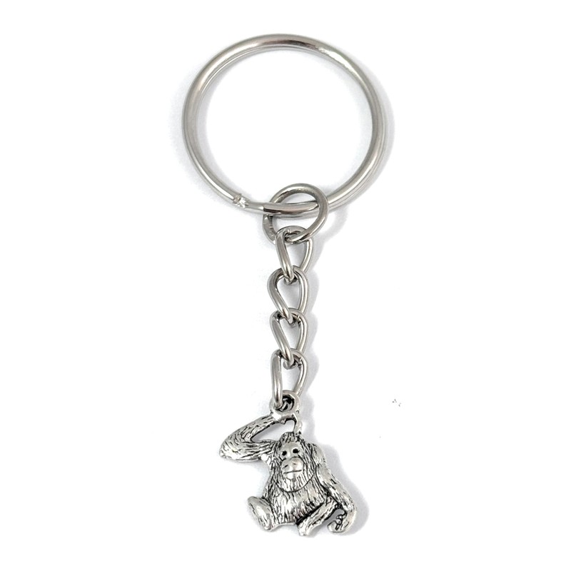 - Small silver tone orangutan charm (1.5 x 1.8 cm) hung on a silver tone keyring (25mm diameter, chain length 30mm),