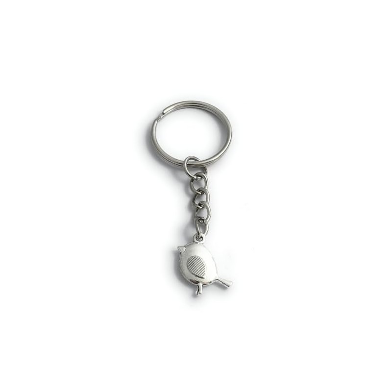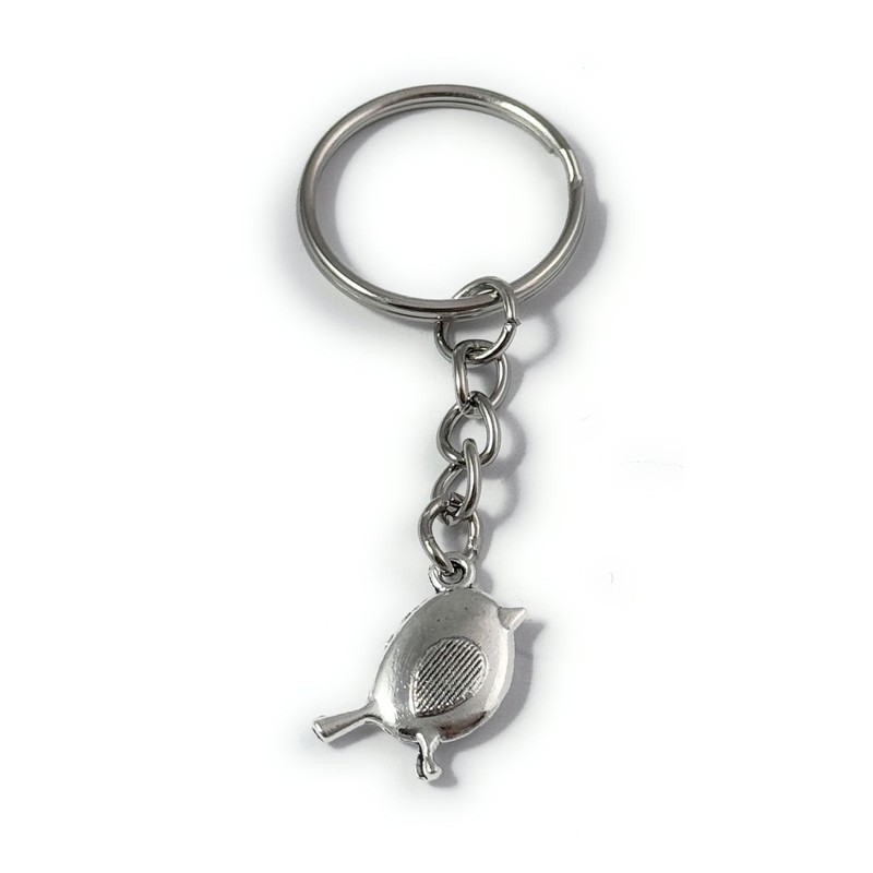 - A small robin charm (18 x 13 mm) hung on a silver tone keyring (25mm diameter, chain length 30mm)