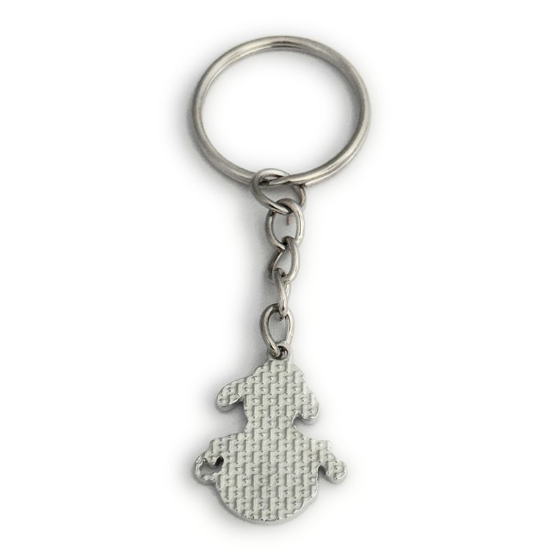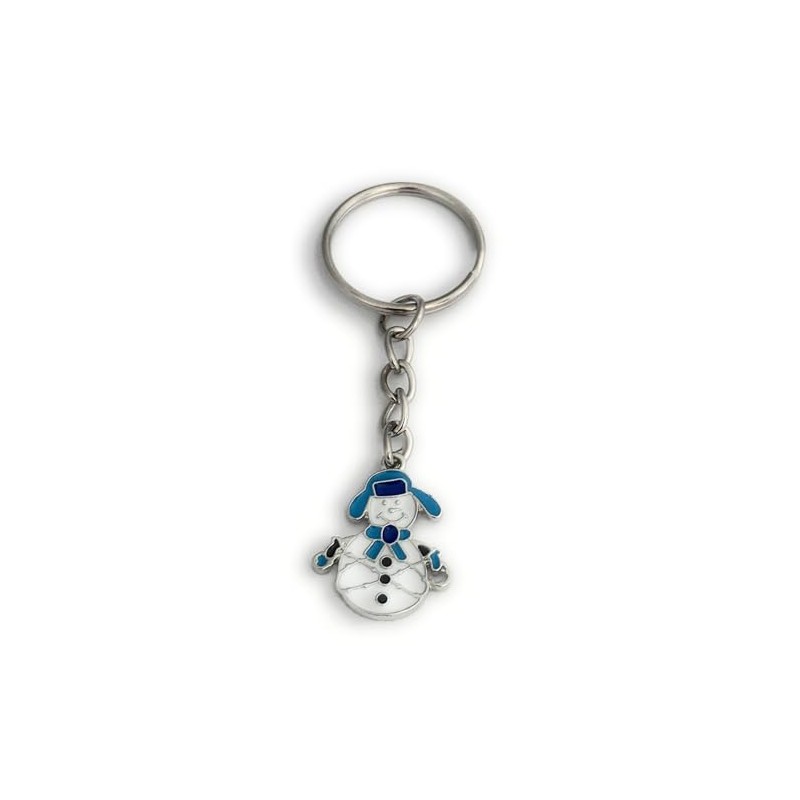 - Small snowman charm with enamel detail on one side (25 x 20mm) hung on a silver tone keyring (25mm diameter, chain length 30mm)