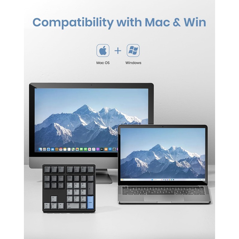 - 【Fully compatible with Mac & Windows】Designed for seamless integration with laptops, MacBooks, and desktop PC, this numpad automatically adjusts key functions to match your system. It's versatile with the ability to customize F13-F15 keys for Mac users. If you are seeking a reliable and efficient number pad for your work or personal use, This number pad will be your personalized presence.