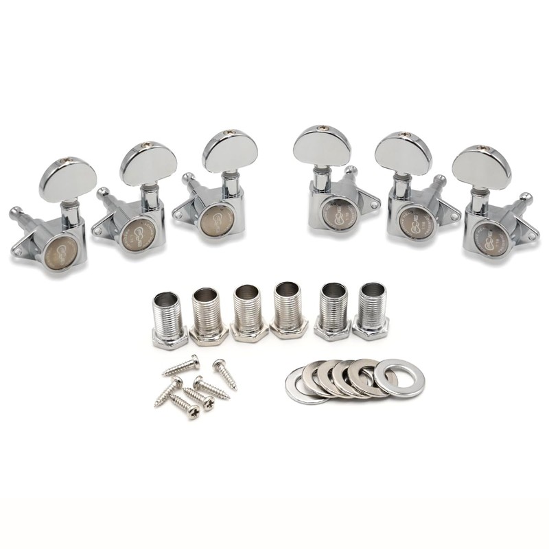 • Package Included:3L+3R guitar machine heads (totally closed), 6 x ferrule, 6 x threaded, 6 x screws