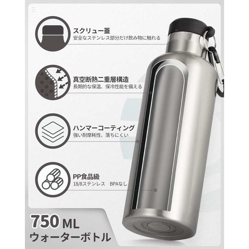 - Package Contents: Bottle cover, 25.4 fl oz (750 mL) large capacity water bottle (carabiner cap).-