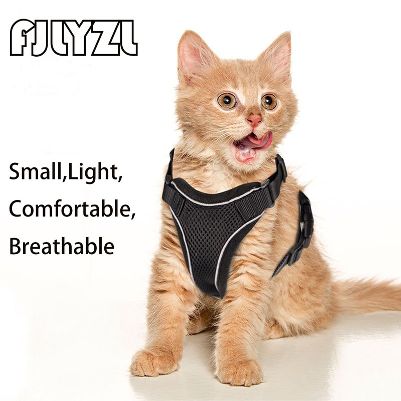 FJLYZL Cat Harness Escape Proof Adjustable Vest for Outdoor Walking,Reflective Strap,Breathable Mesh,Soft and Comfortable Kitten Harness(Black)