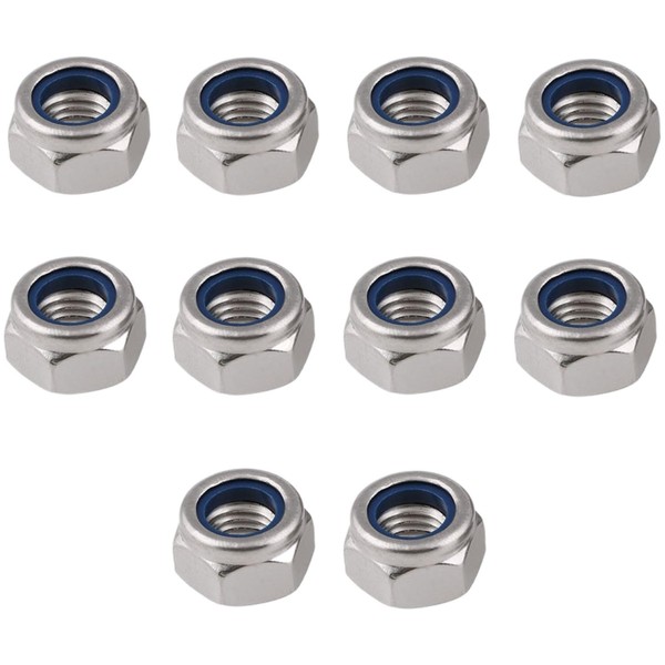 FJmark Lock Nut, Anti-Loose, Hexagonal, Rust Resistant, Stainless Steel, Pack of 10, DIY (M10)