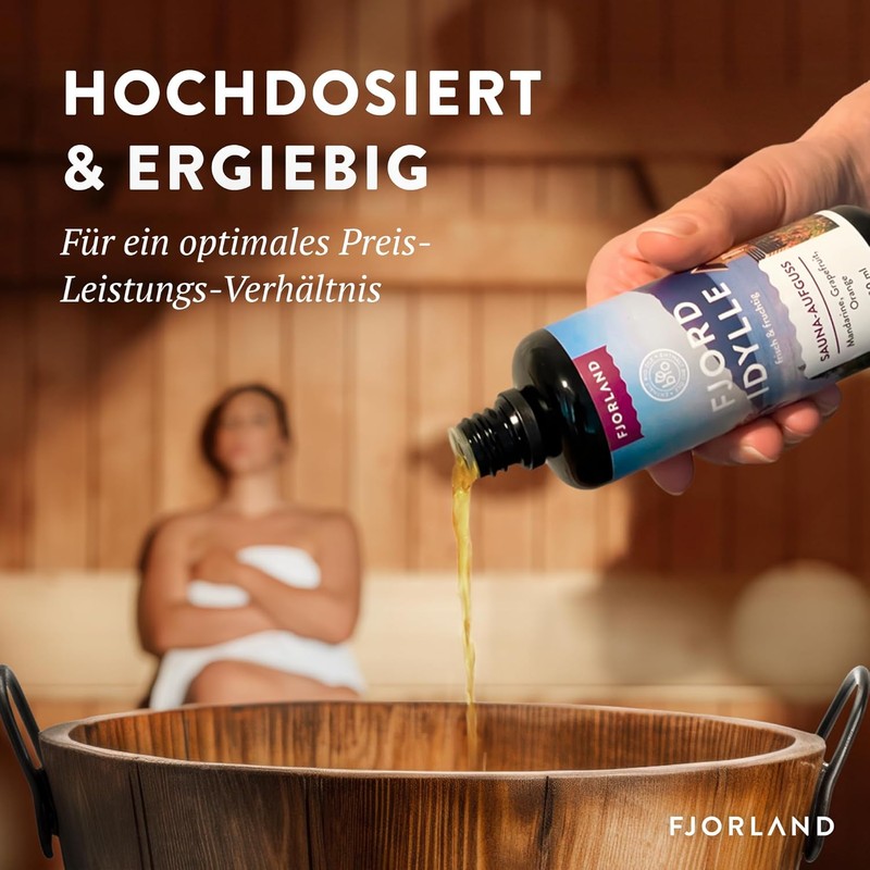 - Inner peace: let our sauna infusion Fjordidylle take you to new places. The aromas lie in the air for a long time and provide a unique sauna experience.