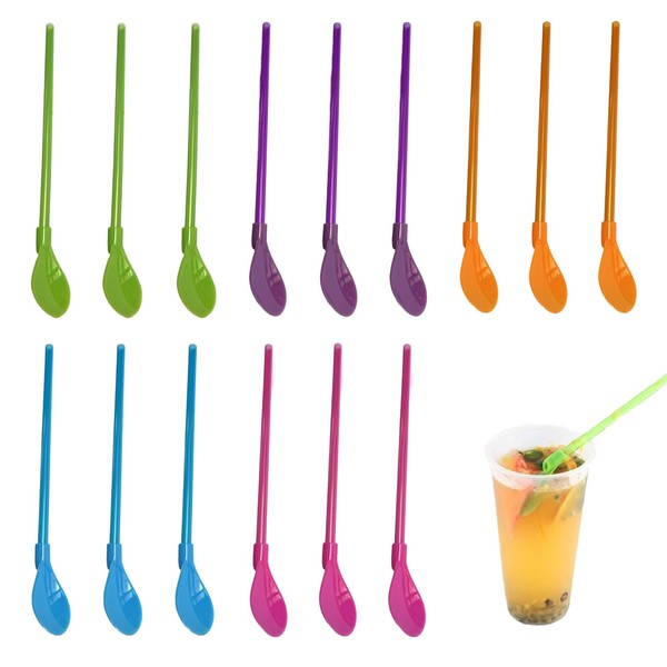 This fKiZanthene set includes 15 reusable spoon straws in 5 vibrant colors (3 of each), designed to combine functionality with style for all your beverage needs. Each straw features a integrated spoon at the end, allowing you to sip liquids and scoop solids—perfect for slushies with ice chunks, layered smoothies, or desserts in a cup. The durable plastic construction resists bending and breaking, making them suitable for both hot coffee and icy milkshakes.​