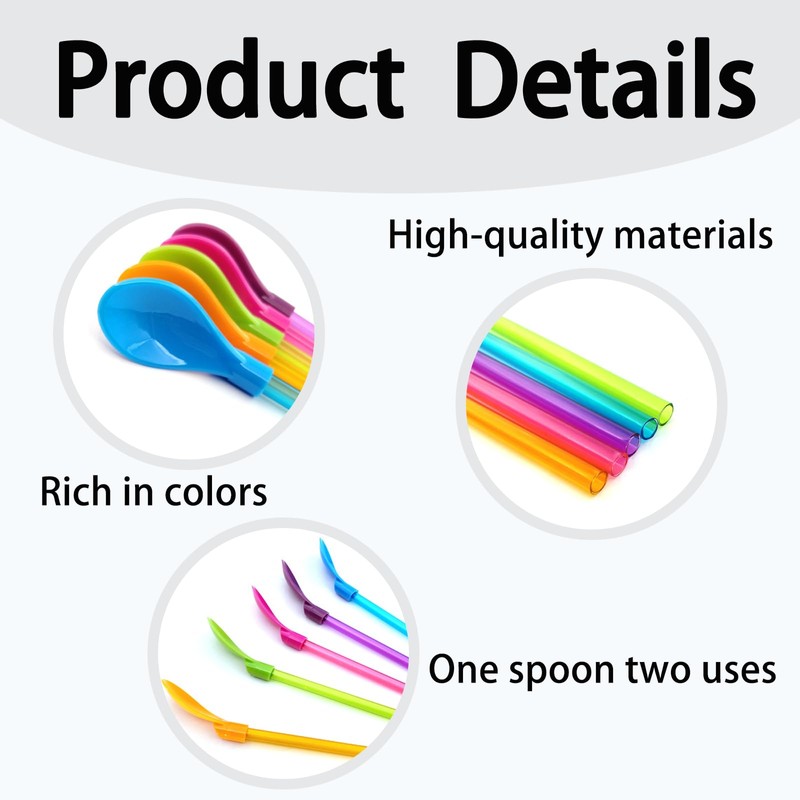 - 2-in-1 Spoon & Straw Design: Each straw features a built-in spoon for easy scooping of slush, ice cream, or fruit pieces, eliminating the need for separate utensils and streamlining your drink experience