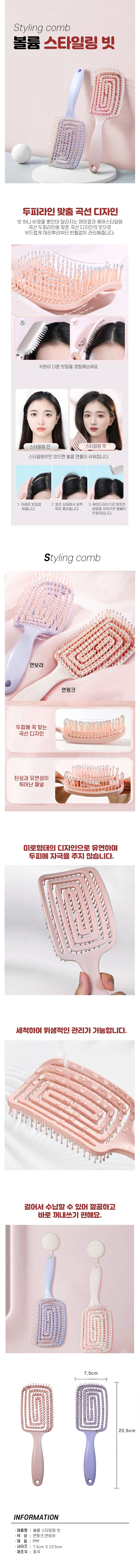 FL Volume Styling Hairbrush Comb Light Pink 2ea