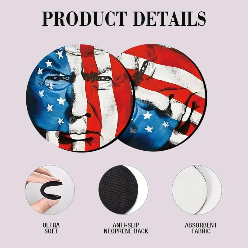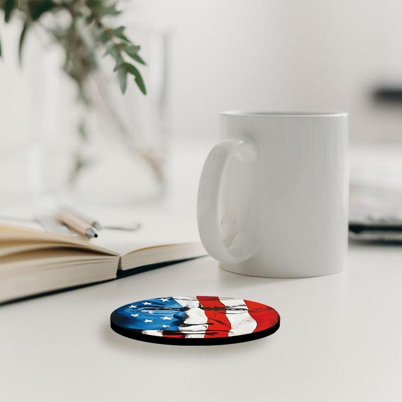 Flag Character Pattern Coaster, 2 Counts Non-slip Heat Resistant Cup Mat, Kitchen Protective Accessories, Room and Outdoor Decor Gifts