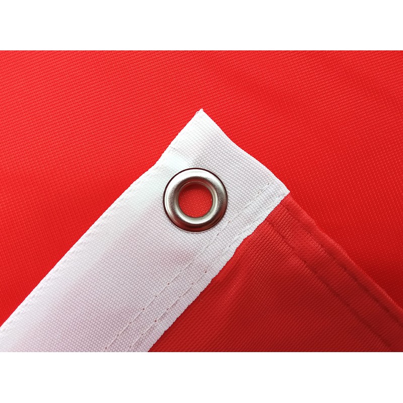 - Attachment: printed design – hemmed all around with double safety seam and equipped with strong white trim tape on the mast side and two sturdy metal eyelets for quick attachment to the flagpole.