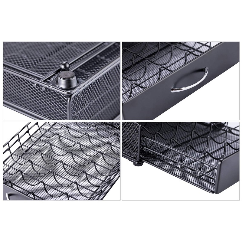 - Space Saver // The drawer in solid black take up very little counter space, space saving design of this coffee pod storage is suitable for kitchen or office, modern design like an artwork to decorate your home or room.