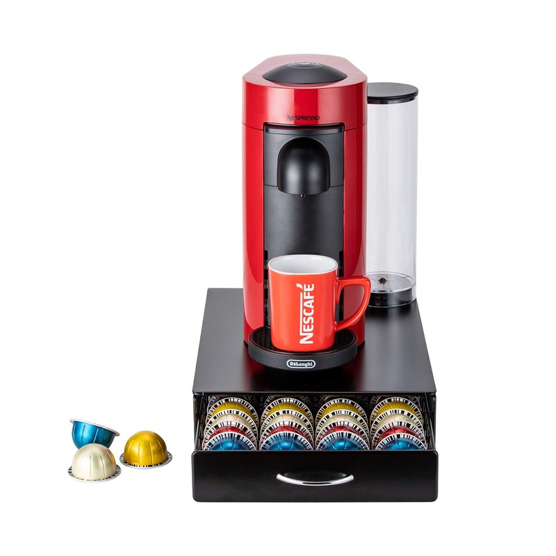 - Capacity // Holds 40 Pods for Nespresso Vertuoline Capsules, keeps your Vertuoline capsules neatly organized, protected, and accessible, plus it can be placed directly underneath your coffee machine to save valuable counter space - perfect for home or office. Capsules are not included.