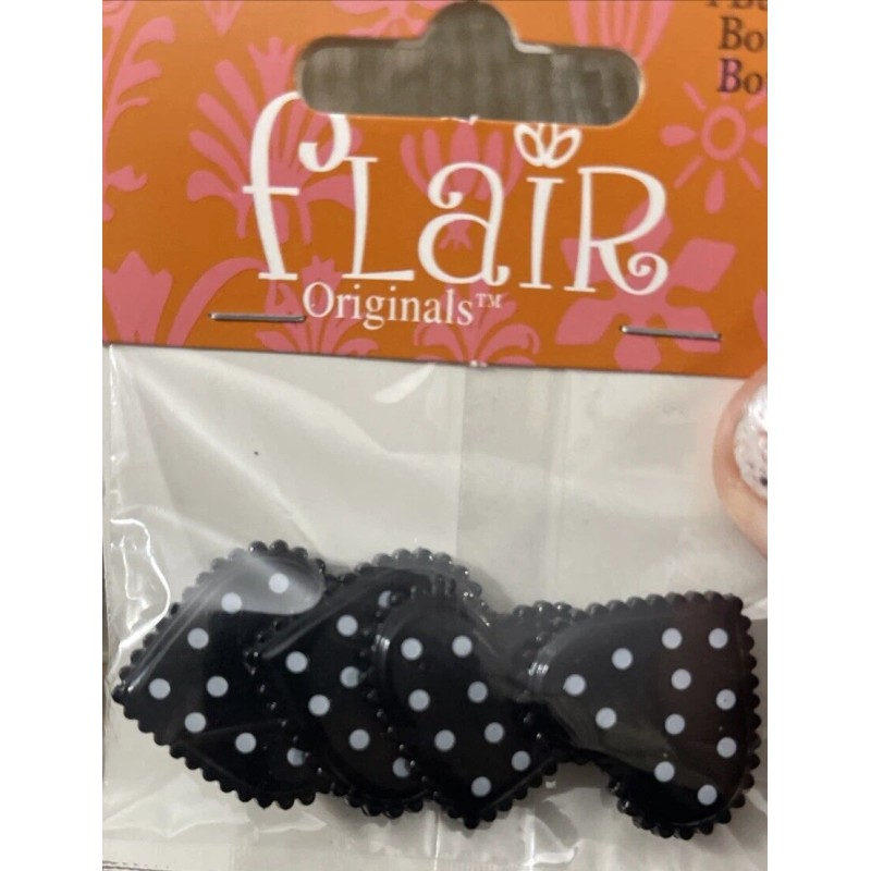 The product is a set of black and white heart buttons from Flair Originals, designed for crafts and sewing projects.