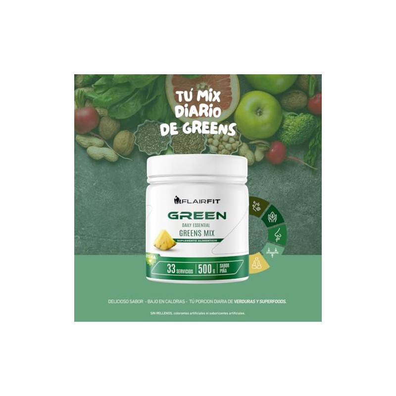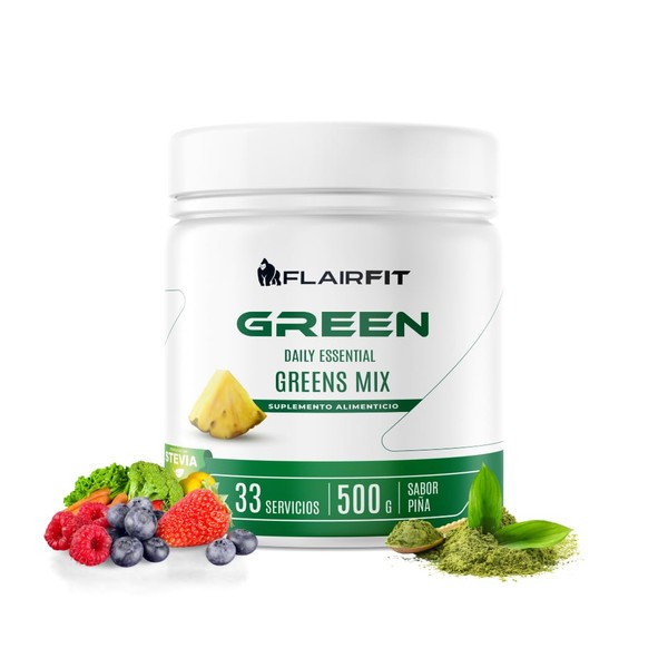 Flairfit - Flairfit® Daily Green Mix, Suplemento Superfood +50 Ingredientes Múltiples Beneficios Todo En Uno, A base de Verduras, Adaptógenos, Probióticos, Prebióticos, Fibra, Proteína Vegetal, Colágeno, Vitamínas, Antioxidantes 500g/Piña. ⭐ Calidad premium certificada con excelentes reseñas. Construcción robusta y atención al detalle. 🏆 Recomendado por expertos. Ideal para quienes buscan lo mejor en calidad y estilo. Producto auténtico con satisfacción total asegurada. ¡No te quedes sin el tuyo y aprovecha esta oportunidad única!