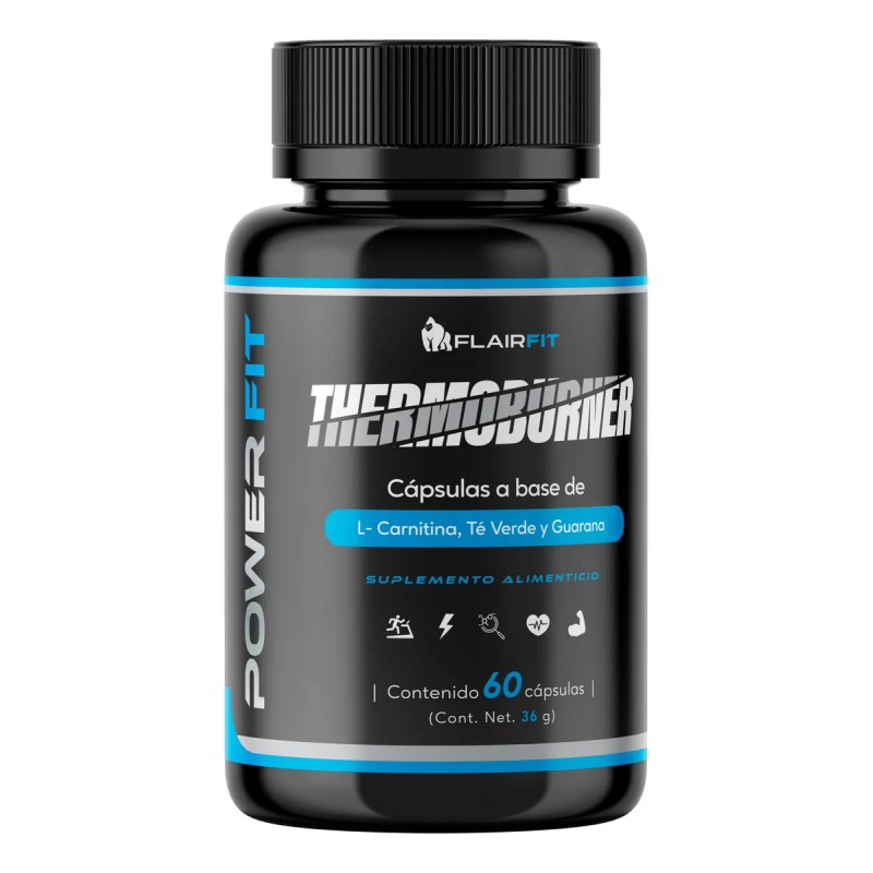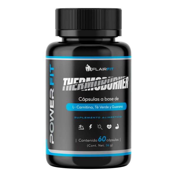 Flairfit ThermoBurner Premium Formula is a 60-capsule, unflavored supplement combining L-Carnitine, Guarana, Green Tea, Vitamin C, Black Pepper, and Cayenne Pepper. It's designed to boost metabolism, enhance fat burning, increase energy and focus, and support weight management through its potent thermogenic and synergistic ingredients.
