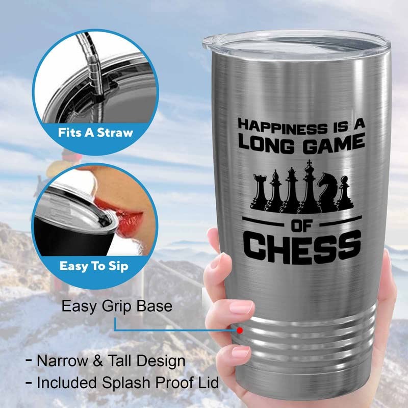 Flairy Land Chess Silver Tumbler 20oz - game of chess - Chess Board Game Chess Lovers Gifts Chess Piece Gift 4 Player Chess Checkmate