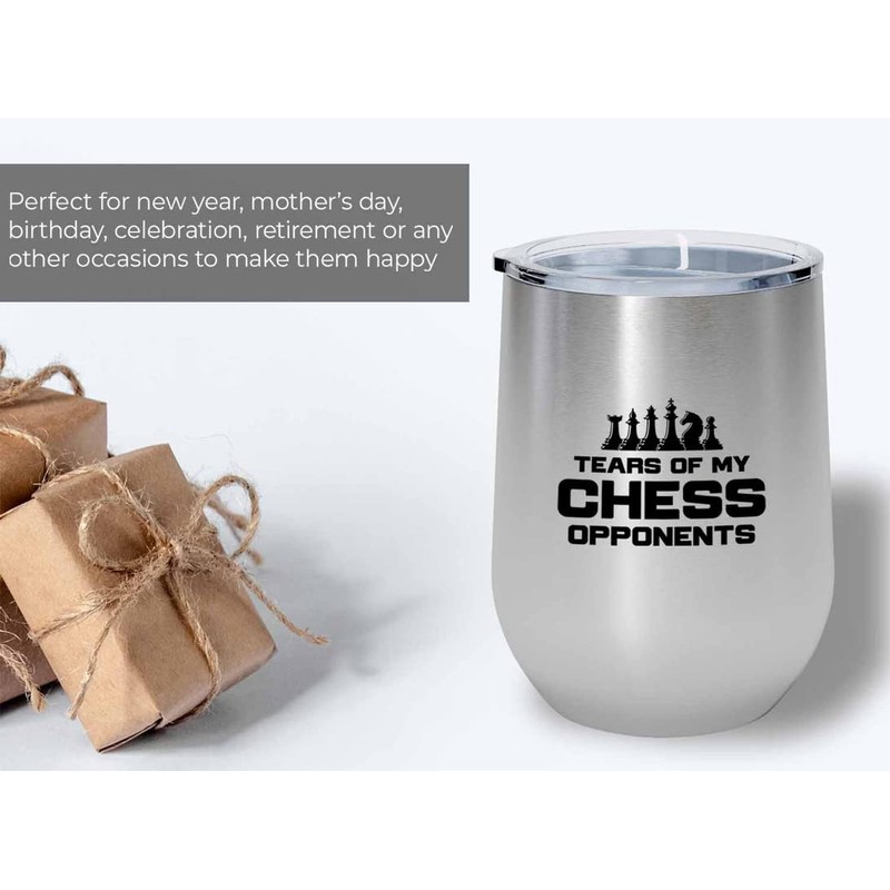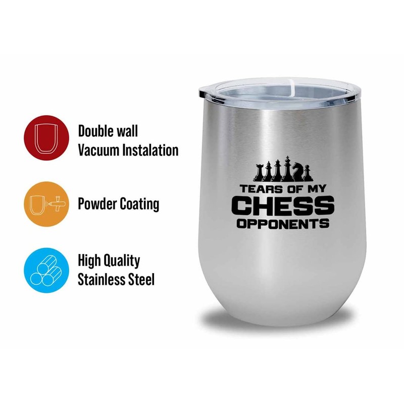 Flairy Land Chess Silver Wine Tumbler 12oz - Tears of my chess - 3 Player Chess Board Gifts for Chess Lovers Chess Club Strategy Chess Dad Chess Son