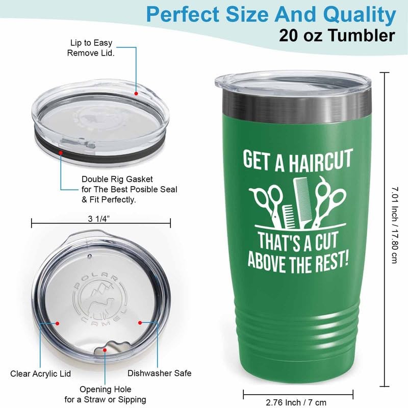 Flairy Land Hair Stylist Green Edition Ringneck Tumbler 20oz - A Cut Above The Rest! - Hair Stylist Gift Beautician Hairdresser Salon Barber Hairdo Cosmetoloist Scissors Blower