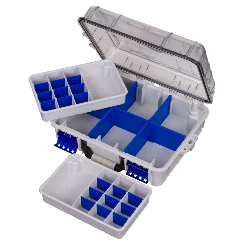 - WATERPROOF CONSTRUCTION: This tackle box has a durable, thick-wall construction and a 360-degree waterproof, airtight rubber gasket. The recessed, polycarbonate lid serves as a nearly indestructible work surface.