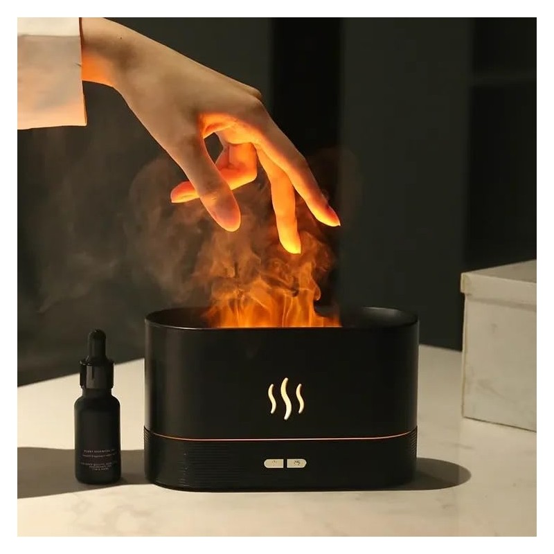 Flame Aroma Diffuser Humidifier 180ml, Oil Essential 2 Modes Brightness Aroma Humidifier with Fire Flame Effect for Home,Office,Spa,Gym(Black)(Black)
