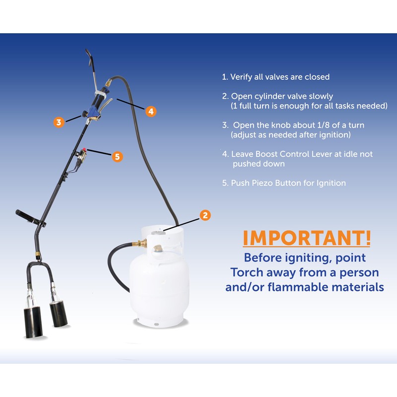 - ARRIVES FULLY ASSEMBLED: This torch is 40 inches long and is ready to use right out of the box; includes a 16-foot hose, allowing you to access hard-to-reach areas and cover more ground without constantly moving the propane cylinder