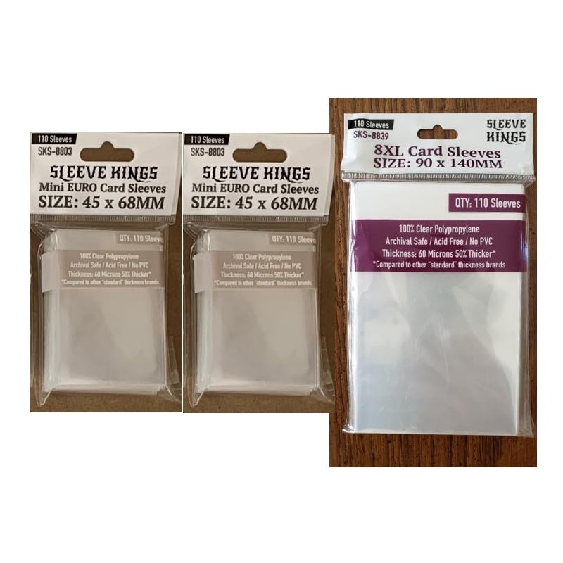 Compatible Card Sleeve Bundle for this game! You will receive 3 packs of card sleeves, enough for "Flamecraft". Each pack contains 110 sleeves and each sleeve is 60 microns thick. 50% thicker than other standard sleeves AND 10% more sleeves than many other brands! Buy with confidence! You can see the sizes and # of cards here: https://boardgamegeek.com/geeklist/164572/card-sleeve-sizes-games?itemid=9013676#9013676