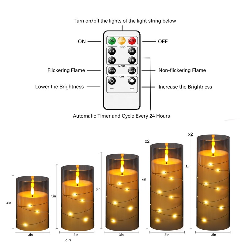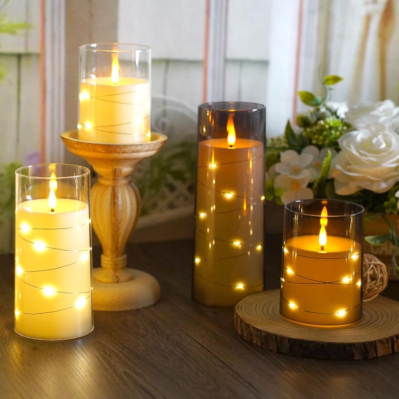 - 【Unique Design】: These flameless candles are designed with embedded light strings, adding a unique decorative element to battery-operated candles. The light strings are safely wrapped inside the candles, creating a warm and cozy atmosphere.