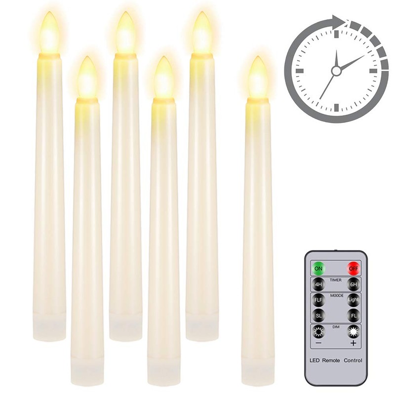 - ✨ CANDLE SET - 6pcs Ivory Unscented Taper Flameless Candles + 1 Multifunctional Remote Control in a set. | Taper size: 7.9"H * 0.78"D, fits most candle holders.| Color temp: 2500-2700K (Warm White Flame).