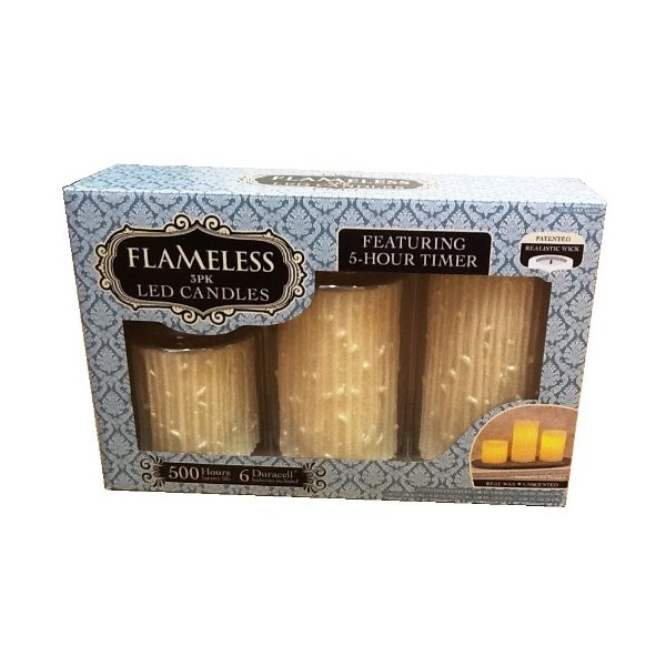 Flameless LED Candles - 3PK, 5-Hour Timer, Realistic Wick & Unscented Wax