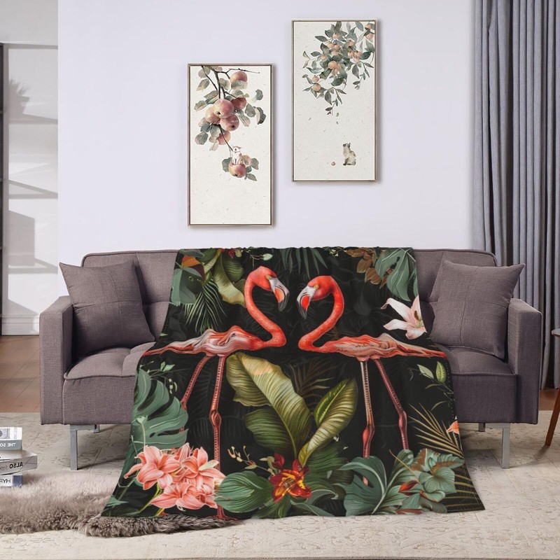 Flamingo Tropical Throw Blanket - Flamingo Stuff Decor Merch Cozy Flannel Soft Warm Plush Lightweight Bedding - Gifts for Kids & Adults - 50"X40"