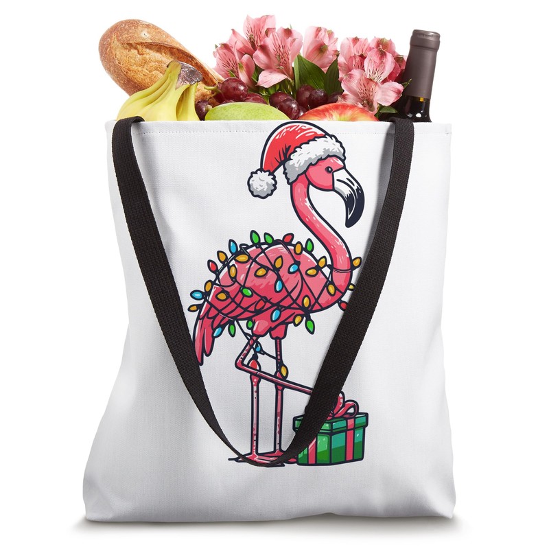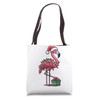 Flamingo Wearing Santa Hat, Holding A Present Box Xmas Tote Bag