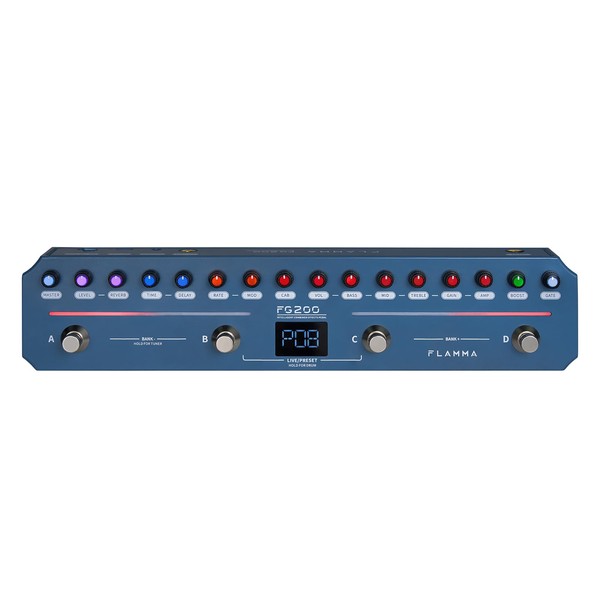 FLAMMA FG200 Intelligent Multi-Effects Processor with 52 AMP Models 5 BOOST Models 16 CAB Simulations 7 Effects Modules 9 IR Slots 40 Presets 40 Rhythm Styles Support APP OTG