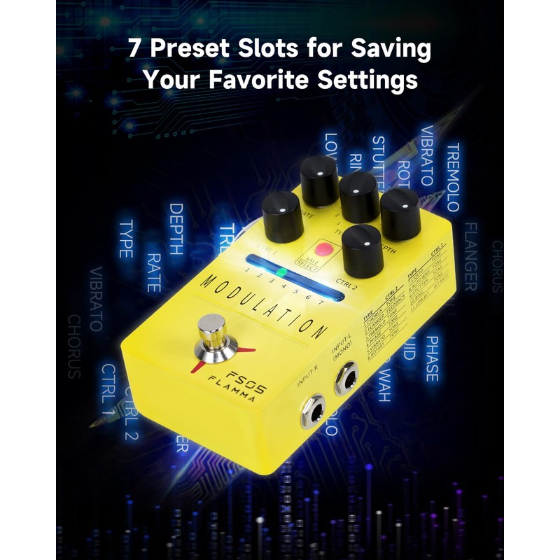 FLAMMA FS05 11 efectos de pedal estéreo de modulación múltiple, 7 ranuras almacenables, bypass real