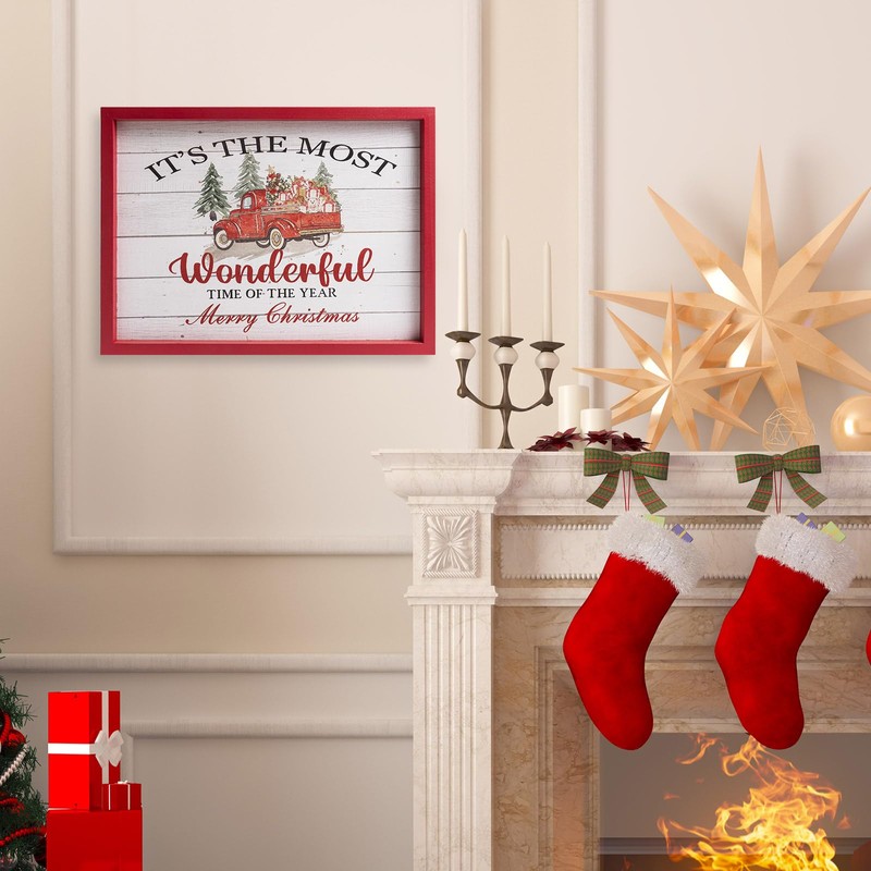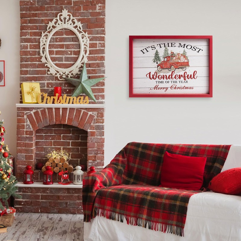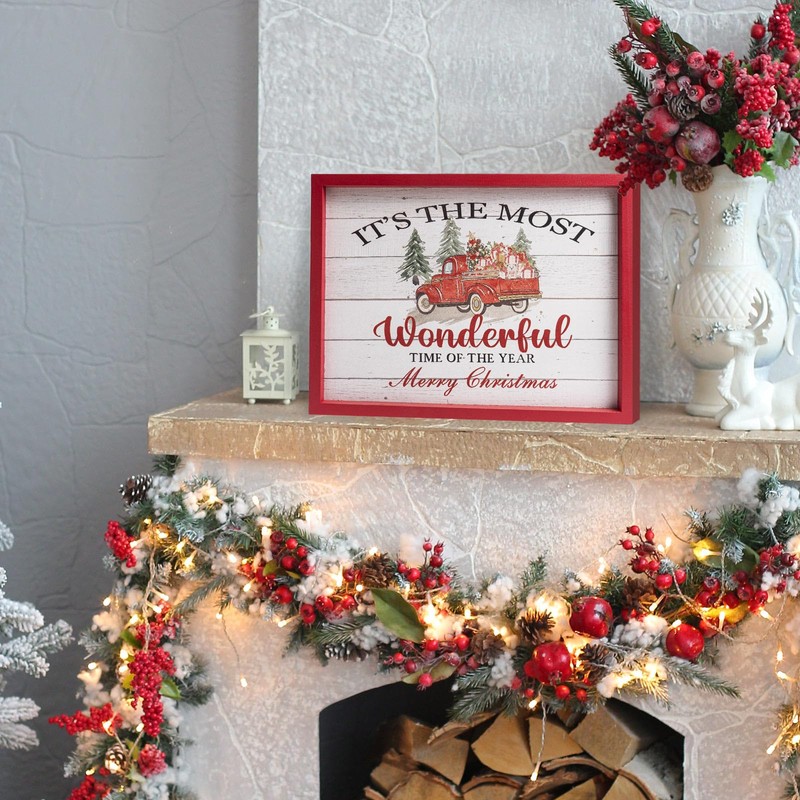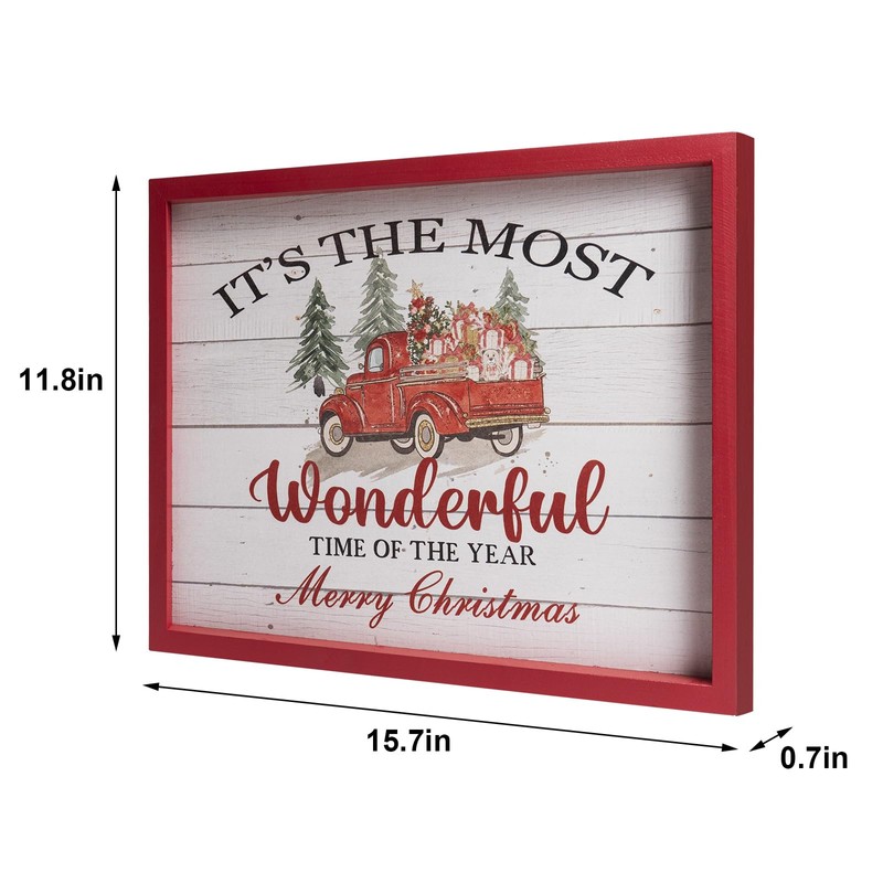 flangairy Red Truck Christmas Wall Decor, Wooden Its The Most Wonderful Time Of The Year Sign, Rustic Holiday Wall Art Framed Home Decorations Indoor