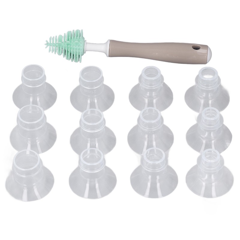 1、Various calibers: Pump flange inserts are available in various calibers, such as 13MM, 15MM, 17MM, 19MM, 21MM, 24MM, to meet the needs of use. 2、Soft Touch: Flanges are inserted into soft, comfortable material for a tight fit, comfortable and efficient, helping to avoid nipple damage or irritation. 3、How to Use: Before use, the wearable pump flange insert can be disinfected with water steam, boiling water or microwave steam pouch. 4、Safe Material: Hand free pump flange insert is made of clear silicone material. Our products do not contain BPA, so you can use them with confidence. 5、Easy to Clean: We are also equipped with flange brushes for better cleaning of the flange, professional cleaning.