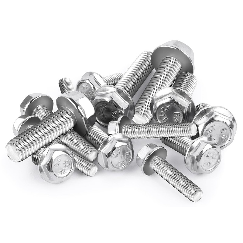 These flange hex bolts are made of 304 stainless steel, which is resistant to rust and corrosion.