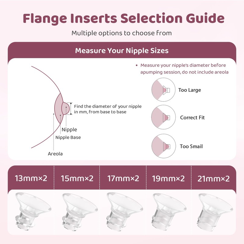 Included Components:Cleaning Brush * 1PCS, 13/15/17/19/21mm Flange Inserts * 2PCS, Nipple Ruler Pink * 1PCS