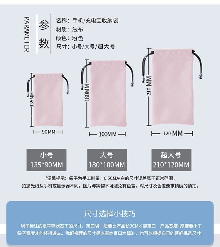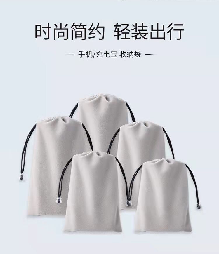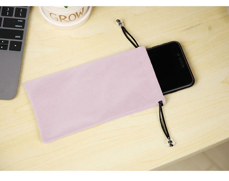 Flannel Drawstring Pouch for Phone, Glasses, Accessories & Makeup Brush Gray + Large 210mm x 120mm [Single Pack] 10ea