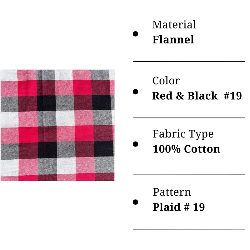 Flannel Fabric by The Yard | 60" inches Wide Flannel Fabric | 100% Cotton Flannel Fabric for Baby Blanket, PJ, Shirt, Cloth Flannel Craft Fabric - Red & Black 19 Flannel Fabric - 1 Yard