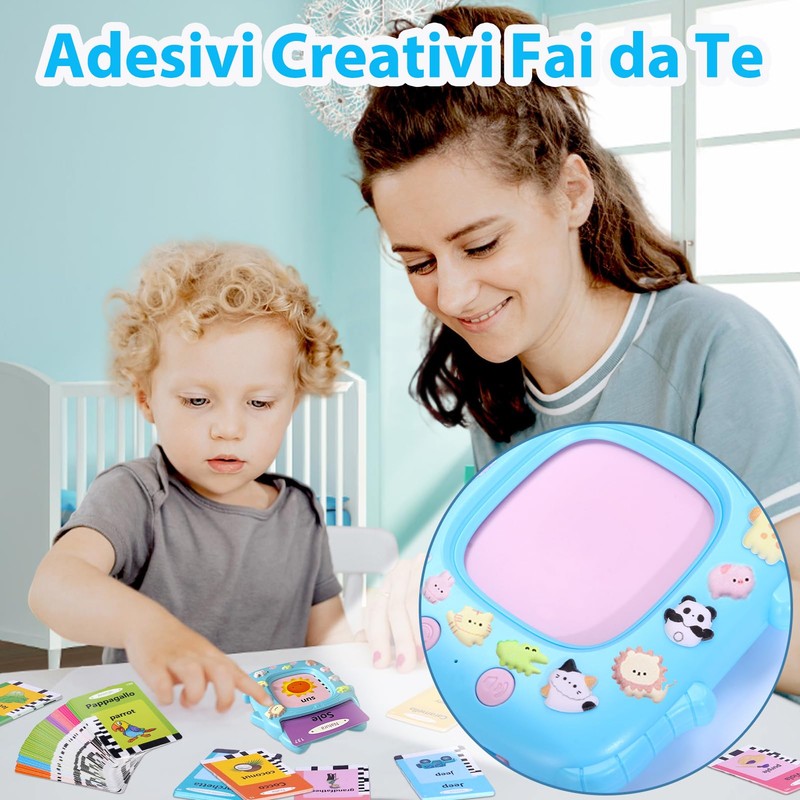 Flash Cards Talking Italian, 244 Words Flashcards Talking Set with DIY Stickers, Vocabulary Games Children Montessori Games Educational Game for Children 1-6 Years