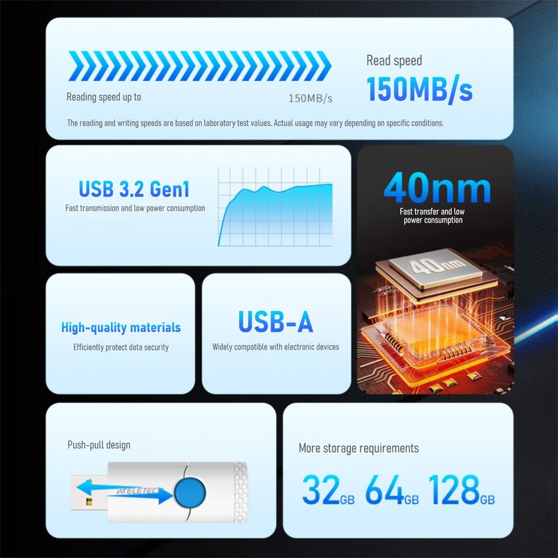 - Read speed up to 150MB/s USB 3.2 Gen 1 / USB 3.0 port required on host devices to achieve optimal read/write speed; backwards compatible with USB 2.0 host devices at lower speed