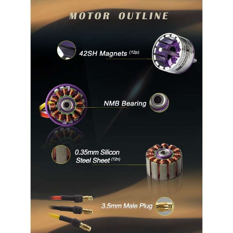 • The motor is characterized by support 2~4S lipo. Suitable for multicopter, RC aircraft, helicopter, drone and fixed wing