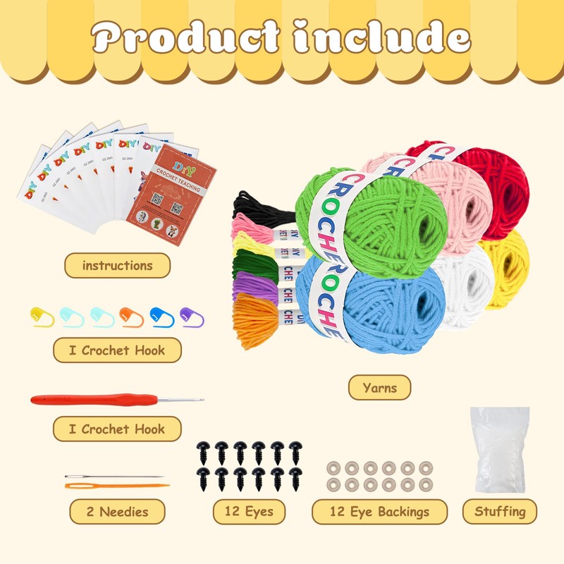 • 【Improve Attention and Creativity】This knitting kit is perfect for DIY classes to improve kids' attention and creativity. It also suitable for parent-child interaction.In addition, crocheting dolls can relieve stress and relax your mind.