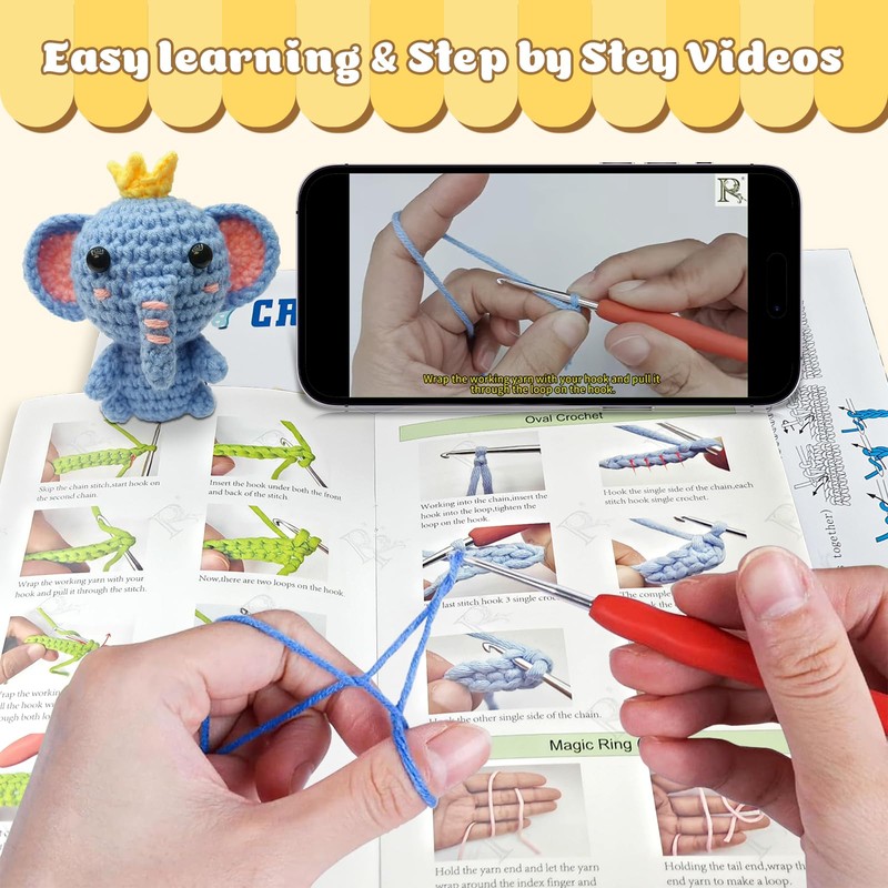 • 【Complete Kit for Beginners】Crochet kit with all the accessories you need. Comes with yarn, crochet hook, stuffing, needles, eyes, marker clasps, detailed instructions, easy to follow videos.The smooth and soft yarn in this crochet kit is perfect for beginners,unlike traditional yarn,ideal for beginners.You can use it to create six cute animals. Please pay some patience and concentration.