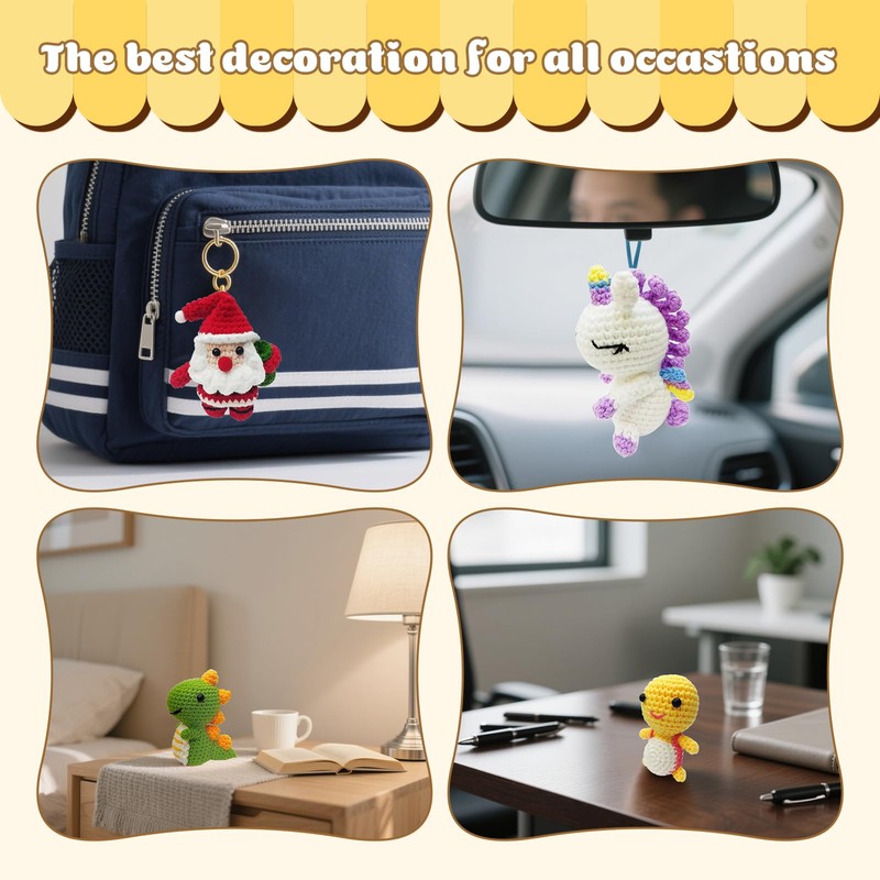 • 【Widely Used】Crochet set suitable for making keychains, children's toys, home decoration, car pendants, car ornaments, bedroom ornaments, windowsill ornaments and anywhere you want to decorate, add more lovely elements to your life.