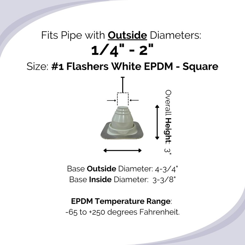 Flashers #1 White EPDM Square Base Flexible Roof Jack Pipe Boot Metal Roofing Pipe Flashing (Pipe OD 1/4" to 2") - 100% Made in The USA