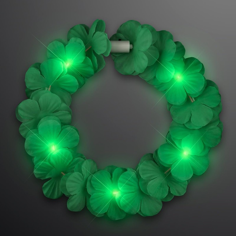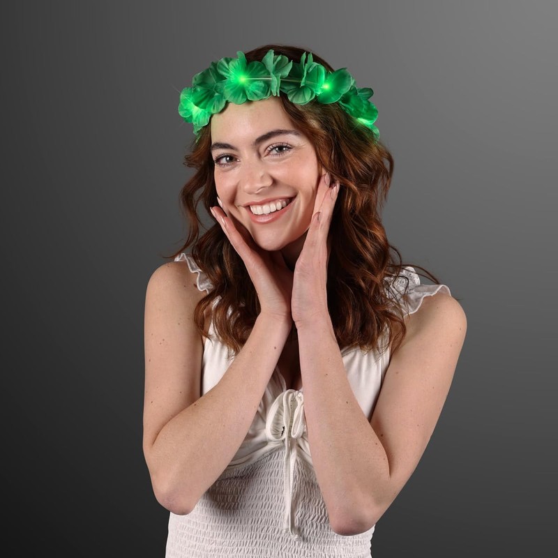 - INCLUDES: 12 Hawaiian Lei Floral Headbands with Green Flowers and LED Lights