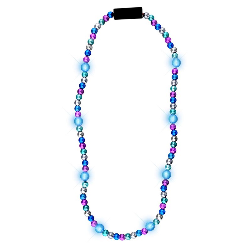 - INCLUDES: Twelve LED Necklaces- Each is 31" Long With Turquoise, Pink & Silver Beads With Bright Turquoise LED Lights